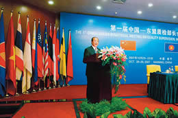 李长江强调指出,质量是全世界的共同话题,是全人类的共同追求,是保障经济特别是外向型经济健康、快速发展的关键因素。建立质检合作机制,深入开展质检交流,就检验检疫、原产地规则、质量标准化、质检能力建设和人员培训等开展合作,是中国-东盟的共同愿望。中国-东盟建立对话关系以来,在质检领域已开展了一系列富有成效的合作。目前,双方不仅建立了高层质检合作机制,加强了质检的协商与对话,国家质检总局也已同东盟中的8个成员国签订了40余项合作协议。