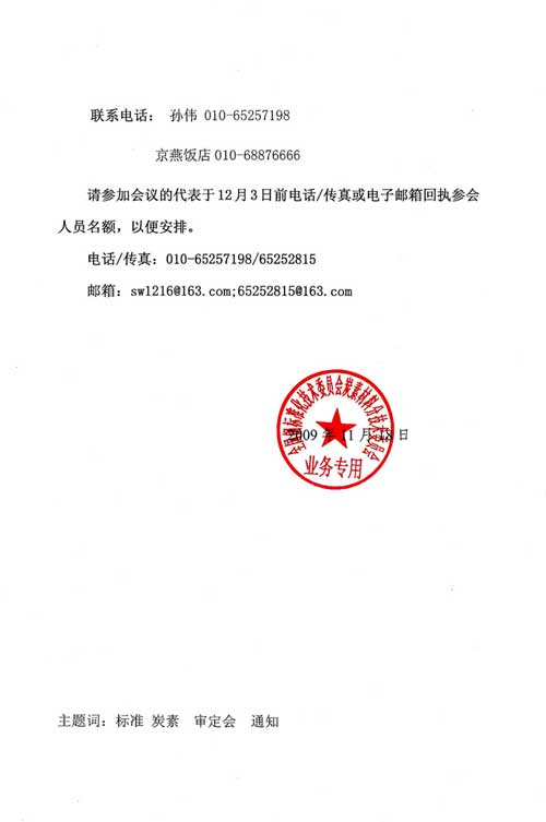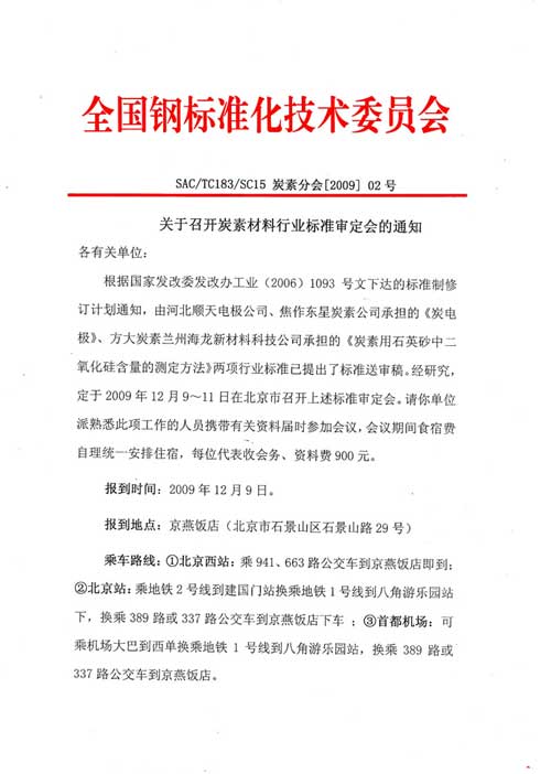 关于召开炭素材料行业标准审定会的通知