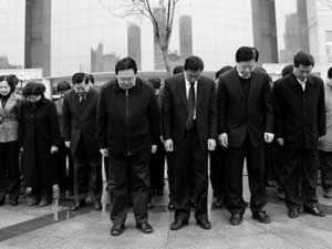 4月21日7时49分,国家质检总局举行仪式哀悼青海玉树地震遇难同胞。国家质检总局党组书记、局长王勇,党组成员、副局长魏传忠,党组成员、国家标准委主任纪正昆,党组成员、总检验师项玉章等领导,以及总局各司局、国家认监委、国家标准委主要负责人为遇难同胞默哀一分钟。