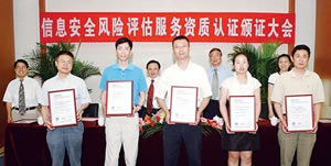 中国信息安全认证中心在今后的工作中将继续积极服务于国家信息安全保障工作大局,服务于产业发展,以这次颁发首批信息安全风险评估服务资质认证证书为契机,进一步规范工作,提高服务资质认证工作的质量和服务水平,为国家信息安全把好关,为获证单位服好务,为推动我国信息安全认证认可事业的发展作出新的、更大的贡献!