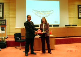 考察分成两部分,第一部分QUALICERT 服务认证培训是在SGS总部日内瓦进行的,SGS全球服务认证产品经理FRANCOISE REIN 就服务认证在欧洲的发展历程、推广经验、SGS的新产品进行了精彩的演讲,并且对服务证在欧洲的案例进行了学习。