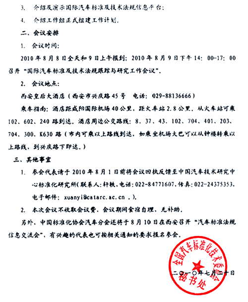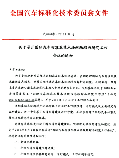 关于召开国际汽车标准及技术法规跟踪与研究工作会议的通知