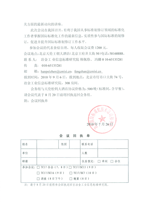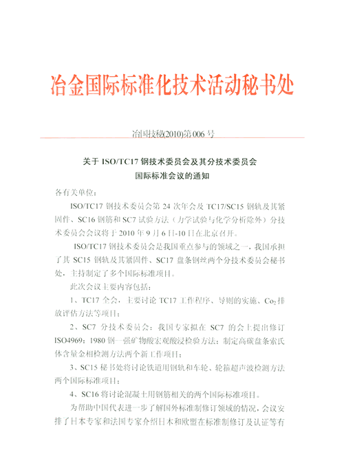 关于ISO/TC17钢技术委员会及其分技术委员会国际标准会议的通知
