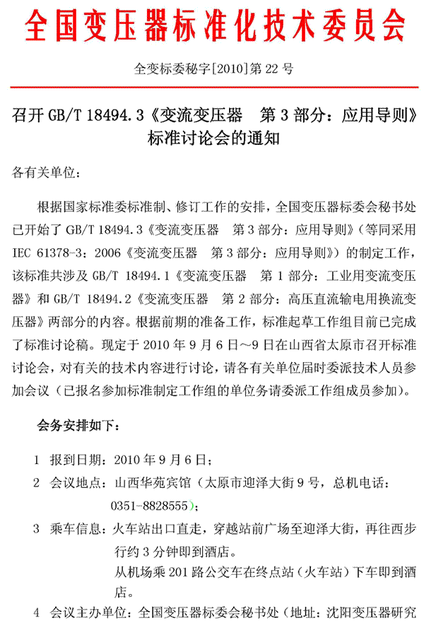 关于召开《变流变压器 第3部分:应用导则》标准讨论会通知