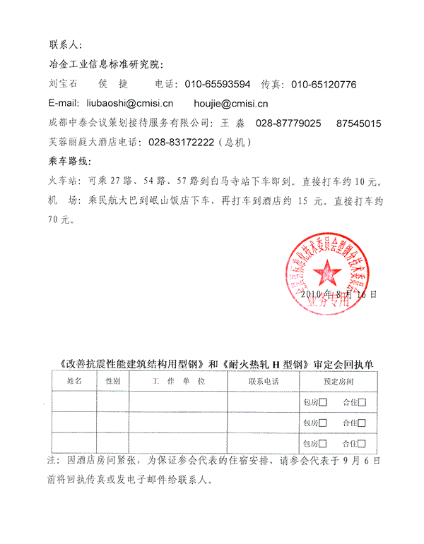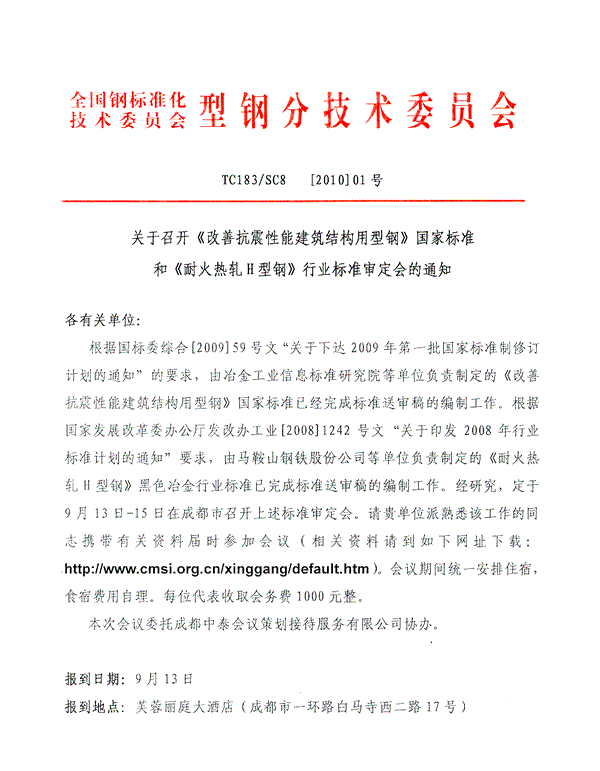 《耐火热轧H型钢》等行业标准召开审定会的通知