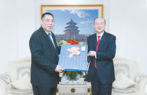 12月21日,国家质检总局局长支树平会见了来访的澳门特别行政区行政长官崔世安先生一行。支树平与崔世安在会谈中共同探讨了国家质检总局支持澳门抗击通胀、提升澳门质检水平、建立内地与澳门高层质检合作机制等问题。国家质检总局国际司、卫生司、检验司、食品局、国家认监委、国家标准委、通关司、动植司,以及澳门行政长官办公室、国务院港澳办等有关人员参加了会谈。