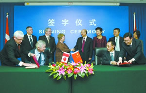 1月13日,国家质检总局局长支树平会见了加拿大渔业与海洋部部长盖尔·席亚女士、加拿大驻华大使马大维一行。支树平与盖尔·席亚见证了国家质检总局食品局局长俞太尉与加拿大驻华大使马大维草签关于中国从加拿大进口可食用海洋动物产品的检验检疫和兽医卫生条件合作协议。