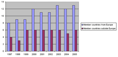 图4示出:全球化目前还未影响到在IEC的WG 和MT中工作的专家的国籍,他们几乎都来自欧洲,但在不久的几年内可能会发生变化。