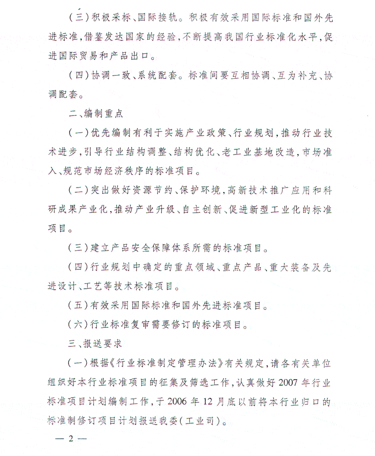 国家发展改革委关于编报2007年行业标准计划的通知