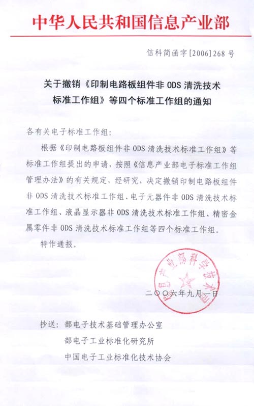 《印制电路板组件非ODS清洗技术标准工作组》等四个标准工作组撤消
