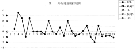 在分析用通用控制图完成后,按第本节“控制图的判断”要求,找出异常点,查明原因后排除,排除异常点后的样本组数大于或等于20时,利用排除异常点后的数据重新计算控制界限并打点判断。排除异常点后的数小于20时,应重新抽样,重新作图。如表二中第2组样本则属异常点,应分析原因予以排除,排除后