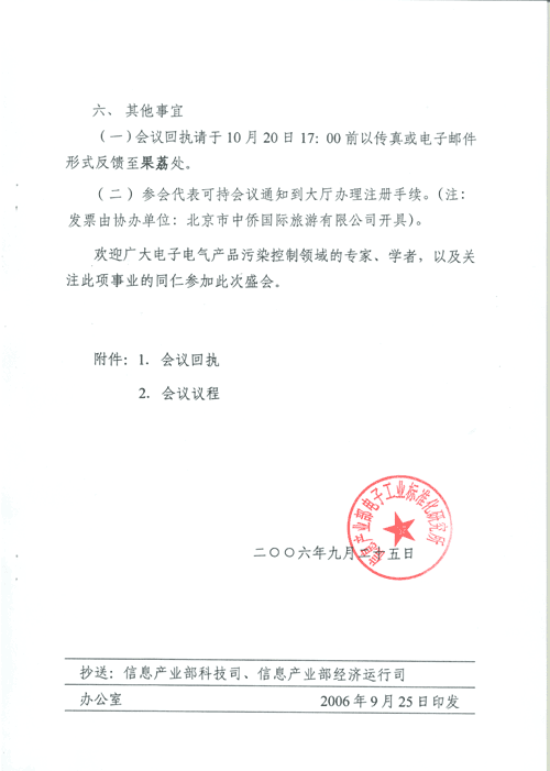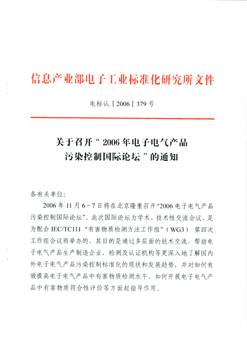 关于举办“2006电子电气产品污染控制国际论坛”的通知