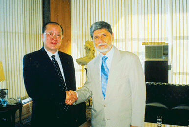 图为出访期间,李长江会见巴西外长塞尔索·阿莫林。