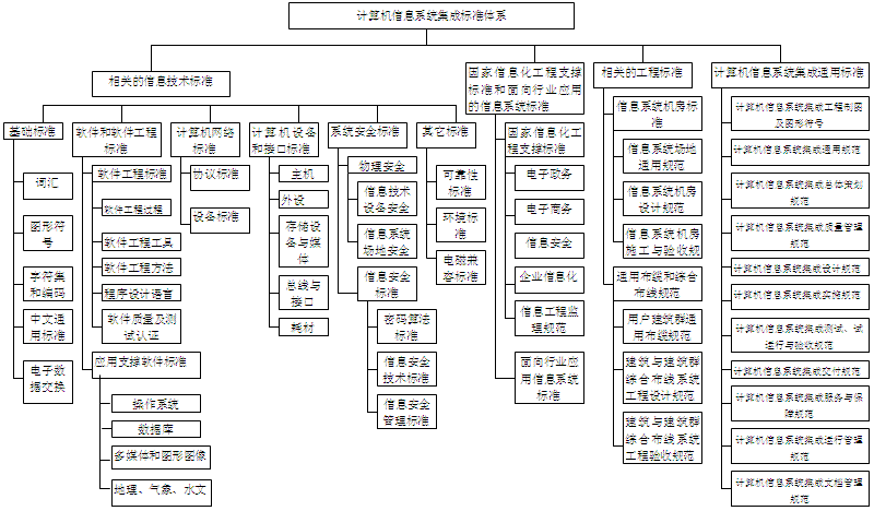 本标准体系4部分(4大类标准)中,前3部分极大部分已有现行有效的相关标准,有些标准正在制定或修订,有些已经列入制定规划中,这些标准绝大部分可从信息技术目录总汇中查到。只有最后一部分“计算机信息系统集成通用标准”直接面向计算机信息系统集成,急需相应的标准未规范市场有序发展,为产业提供技术支持、保障和服务。