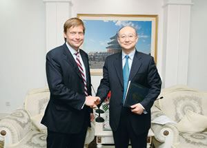 4月26日,国家质检总局局长支树平会见了英国劳氏集团董事会主席托马斯·德森先生一行。宾主就中国国家质检总局与劳氏集团在安全、环保、管理等领域的交流与合作进行了会谈。国家质检总局检验司、特设局、国际司、认监委以及劳氏集团北京代表处等有关人员参加了会见。