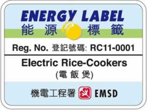 为了提供更多有关“确认式”能源标签的产品信息给公众,机电工程署决定从2011年4月1日开始在“确认式”能源标签设计上加入产品名称和注册号。所有于2011年4月1日后成功注册的产品需要改用新款的“确认式”能源标签,并且有6个月的宽限期,让相关机构做好所需的准备。新款的“确认式”能源标签(如电饭锅)下图所示: