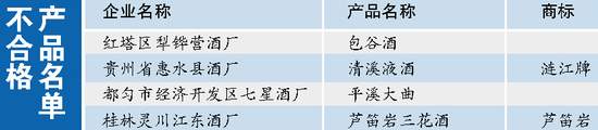 抽查中发现的主要质量问题包括:个别产品杂醇油含量超标。杂醇油是指甲醇、乙醇以外的高级醇类,包括正丙醇、异丙醇、正丁醇等。杂醇油对人体有麻醉作用,长期饮用杂醇油较多的白酒,能引起头痛等症状。个别产品酒精度达不到明示要求。其中有1种产品标签明示为30度,检验结果为14.6度。本次抽检发现的其他问题还包括己酸乙酯、乙酸乙酯含量不符合标准要求,总酯达不到标准要求,固形物指标不符合标准要求,标签标注不规范等。