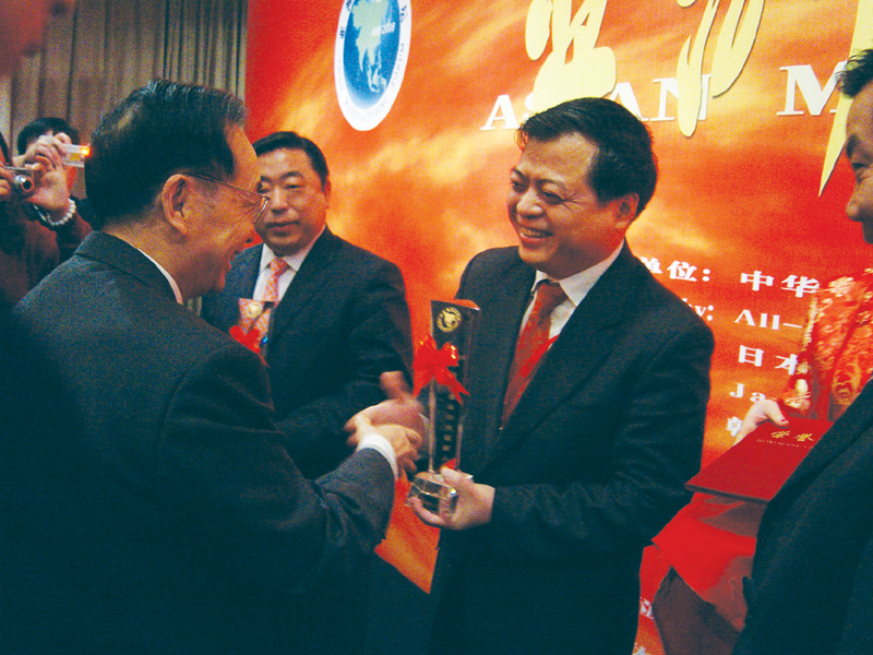 图为全国人大副委员长蒋正华给南存辉颁奖。