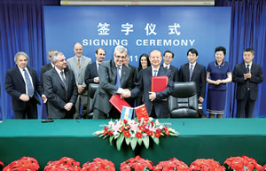 7月19日,国家质检总局局长支树平(前右)会见了来访的阿根廷农牧渔业部部长多明戈斯一行。宾主就两国农产品、动植物产品贸易、检验检疫领域合作等问题举行了会谈。会谈结束后,支树平和多明戈斯分别代表双方签署了相关协议和备忘录。