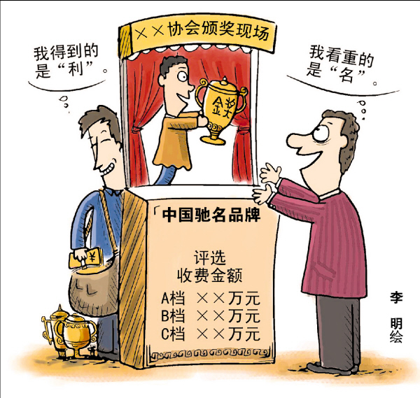 交几万元的“参选”费用,就能使你的企业产品得到“中国驰名品牌”的称号。这样的“好事”,你愿意做吗?