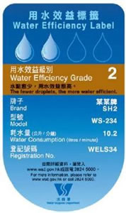 如要获得第1至3级的评级,该洗衣机须符合强制性或者自愿性能源效益标签计划的规定,即洗涤表现及旋转脱水表现。如果该洗衣机为能符合任何以上的能效要求和耗水量要求,则只能获得第4级的评级。自愿性用水效率标签计划只适用于洗衣容量不超过10公斤的家用洗衣机,那些具较大洗衣量、商业用途、不具旋转脱水功能、非由电源推动的洗衣机则不包括在内。经注册的洗衣机将允许在产品上加贴指定格式的用水效率标签,显示其水效率等级和用水量。洗衣机的用水效率标签如下图所示:
