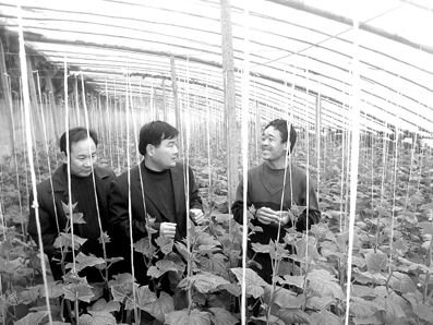 山东沂源县质监局大力推行农业标准化种植。现在整个南岩村,有黄瓜大棚90多个、辣椒大棚60多个、韭菜大棚100多个,年增加收入近万元,家家户户通过标准化大棚种植逐渐走上了富裕路。图为该局工作人员在蔬菜大棚里细心询问种植过程中的各个环节,并就生产过程中存在的问题提出了合理的解决办法。
