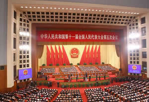第十一届全国人民代表大会第五次会议3月5日上午在北京人民大会堂开幕。肩负亿万人民重托的近3000名全国人大代表出席盛会,履行宪法和法律赋予的神圣职责。