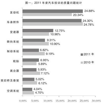 ———与2010年相比,在汽车用户投诉的部件问题中,发动机故障上升至首位,其中“异响”占比近3成。