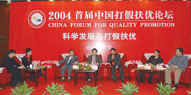 19日下午,由中央电视台《焦点访谈》栏目记者曲长缨、法制与社会频道主持人琦琦共同主持的现场对话活动将论坛气氛带入高潮,现场嘉宾陈小川(中国青年报副社长兼副总编)、何山、戚伟钊、张国强(新华百货宁夏夏进乳品饮料公司北京公司总经理)和安徽阜阳奶粉事件的揭露者高正,围绕打假、维权、扶优与舆论监督,行政执法监督,社会监督及企业自律等话题展开精彩对话。