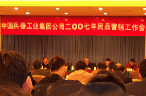 2007年3月30-31日,由兵器工业集团公司生产经营部组织的民品营销工作会议在京召开,参加会议的单位有兵器工业集团公司计划部、人力资源部、资产运营部、国际合作部、科技部、第一、二、三、四事业部、西北兵工部,以及来自兵器工业集团公司90个成员单位共计190余人参加了会议。会议全面总结了兵器工业集团公司2006年度民品经营工作并部署了2007年重点工作,兵器工业集团公司副总经理温刚出席会议并做出重要讲话。