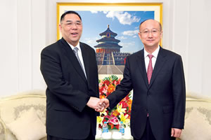 7月16日,国家质检总局局长支树平在京会见了澳门特别行政区行政长官崔世安一行,双方就粤澳新通道项目合作议题进行了沟通交流。支树平表示,质检总局将全力支持配合粤澳新通道的发展建设,共同构筑内地与澳门合作的新桥梁。