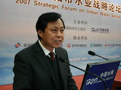 2007城市水业战略论坛上,建设部城市供水水质监测中心主任邵益生就饮用水水质国家标准的市场影响做了发言。