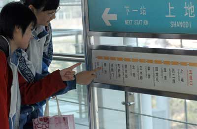 不久前,第29届奥组委奥运新闻中心、北京市人民政府外事办公室联合举行了“北京市规范公共场所英语标识工作暨市民讲外语活动新闻发布会”。会议发布了一条重要信息:今年年底前,北京市重点公共场所英文标识设施将全部更换完毕,2008年奥运会期间将开设多语种的热线服务平台。