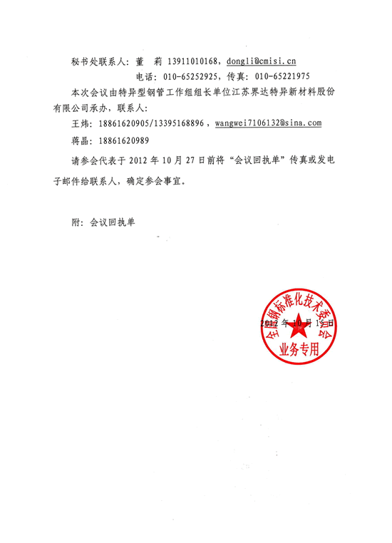 关于召开《石油钻机井架用异型无缝钢管》国家标准