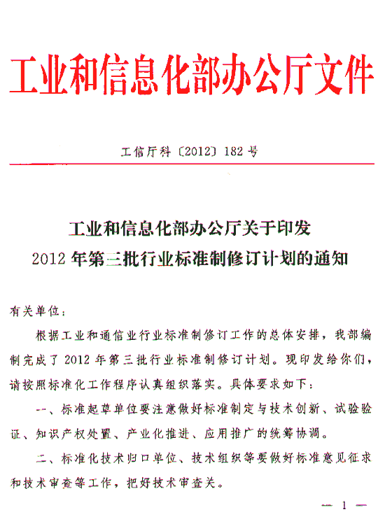 关于印发2012年第三批行业标准制修订计划的通知