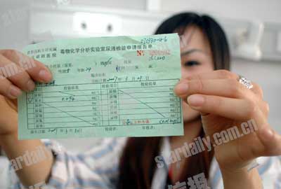 随后,她到医院对身体进行了相关检查。3月30日,李小姐拿到了朝阳医院毒物化学分析实验室出具的尿液检验申请报告单。报告中显示,“尿汞”一项的检测结果为0.094毫克/升。医生解释称,这样的结果是正常值的9倍,也就是汞中毒。