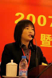 图为海尔科技有限公司总经理、e家佳标准产业联盟秘书长李莉发言