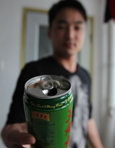 25日下午,记者在卢先生的家中看到,这罐绿豆爽为容量310毫升的铁罐装,罐身为绿色,罐口有一团糊状物,凑近一看还能看到红色和绿色印迹,闻起来有股异味。