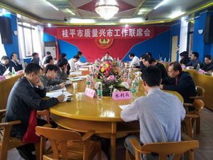 广西桂平市召开质量兴市工作联席会,该市副市长薛有彪出席了会议并做讲话,质量兴市办主任、质监局局长赖品永,宣读了桂平市2012年度实施质量兴市战略工作目标任务考评方案,政府办副主任王家委主持会议。