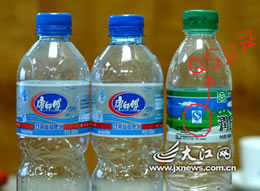 没有QS认证的“康师傅”牌饮用矿物质水与有QS认证的水对比图