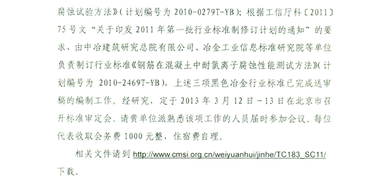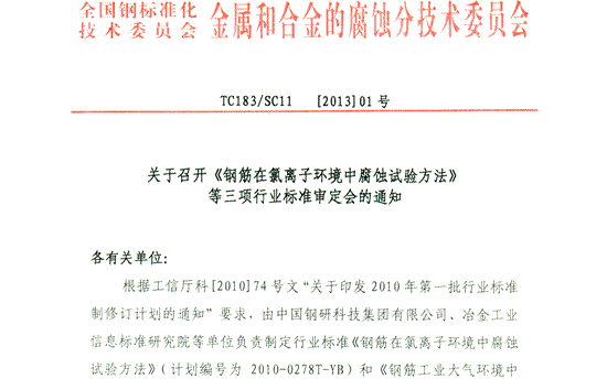 关于召开《钢筋在氯离子环境中腐蚀试验方法》等三项行业标准审定会的通知