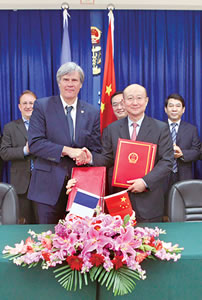 4月26日,国家质检总局局长支树平在京会见了法国农业、食品及林业部部长史蒂芬·勒弗尔先生一行。宾主就建立中国国家质检总局和和法国农业、食品及林业部高层磋商合作机制等议题进行了会谈。会谈结束后,支树平和史蒂芬·勒弗尔共同签署了中法关于动植物产品贸易的检疫、兽医卫生条件、卫生要求等相关议定书。