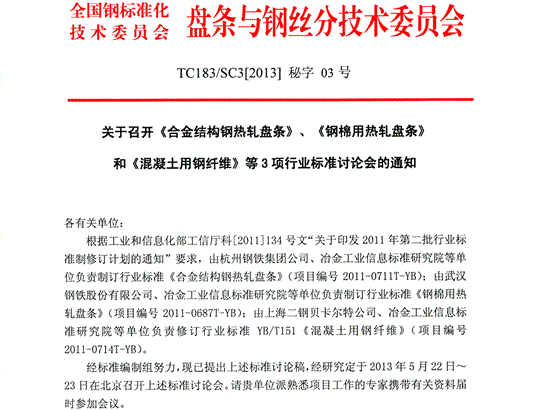 关于召开《合金结构钢热轧盘条》等3项行业标准讨论会的通知
