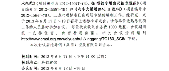 关于召开GB/T 20933《热轧钢板桩》、《汽车大梁用热轧H型钢》等六项标准审定会的通知
