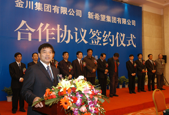 依靠自有技术优势和综合实力,调整产品产业结构,延伸产品产业链,进入新的业务领域,是金川集团公司确定的新发展目标。4月12日上午,金川集团公司与新希望集团公司合作框架协议签约仪式在兰州宁卧庄宾馆举行。这个协议的签订,为金川集团公司新目标的实现增添了浓墨重彩的一笔。