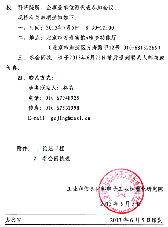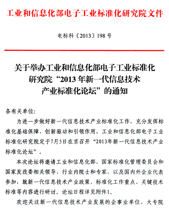关于举办“2013年新一代信息技术产业标准化论坛”的通知