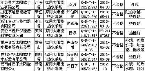 国家质检总局第三季度产品质量抽查结果公布,在针对于太阳能热水系统产品的抽检中,共有7批次产品不合格,涉及到外观、贮热水箱、热性能、能效等级项目。