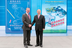 支树平指出,今年的世界标准日主题“国际标准推动积极改变”,非常形象地展示了国际标准在推动世界积极改变和繁荣发展等方面的重要作用。中国将秉承ISO的理念,全力加强技术标准体系建设,积极参与国际标准化活动,为推动标准更好地服务和支撑全球经济、社会和环境协调发展作出积极的贡献。张晓刚先生当选ISO主席,这不仅意味着荣誉,更意味着中国在国际标准化组织要承担更多的责任和义务。