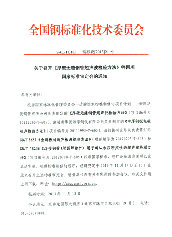召开《厚壁无缝钢管超声波检验方法》等标准审定会的通知