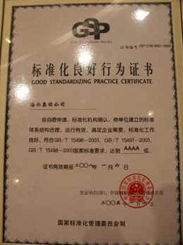 国家标准化管理委员会主任李忠海同志亲自向青岛啤酒股份有限公司、海尔集团公司颁发了标准化良好行为证书,并作了重要讲话。他指出:在国际关系中,包含中国大陆与台湾的关系,最重要的是经济贸易关系。标准是经济贸易的前提,标准是经济贸易的桥梁,是判断经济贸易的准则。因而我国非常重视标准化工作。新世纪头二十年,我国面临两大重要任务,一是继续完善社会主义市场经济体制;二是实现经济结构的战略性调整。01年我国正式加入WTO,作为成员之一,我国的经济行为在国际上应当是负责任、遵守规则的形象。所以要求企业必须做好标准化工作。 随后李主任又将标准化工作的重要性从宏观和微观两个方面展开了深刻阐述。指出没有完善的标准化体系就无法保障社会主义市场经济的正常运行。我国经济结构的战略调整同样也需要完善的标准体系作为保障。李主任还指出,我国的工业生产中,由于国家标准、行业标准等大量老化、滞后,已远远不能满足生产要求,直接导致工业产品质量水平低,因此需要大幅度加以修订提高。他还强调经济结构调整必须要以先进的标准体系作为支撑,要用标准为新兴工业化之路提供支持,实现我国经济的可持续发展,消除高消耗、高污染、高排放,必须用大量的标准来规范企业行为。李主任还阐述了标准化在国际进出口贸易中的重要作用。他指出反倾销、应对技术壁垒等每年给我国的带来的影响达170亿美元。因此迫切需要我们大力提高企业标准化水平,多元化的市场结构就需要多元化的标准与之相对应,因此标准化工作极为重要。 此外,李主任对我国的企业标准化工作历程作了简要回顾,并对以后的工作提出了殷切期望。